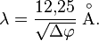 В частности, для электрона, ускоряющегося в электрическом поле с разностью потенциалов