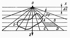Обратная задача. Используя (1.16) с помощью палетки Гамбурцева, можно выяснить форму и положение сечения возмущающего двухмерного аномалосоздающего объекта. Для этого надо знать избыточную плотность