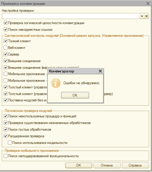 Рисунок 40 – Проверка конфигурации в режиме Конфигуратора