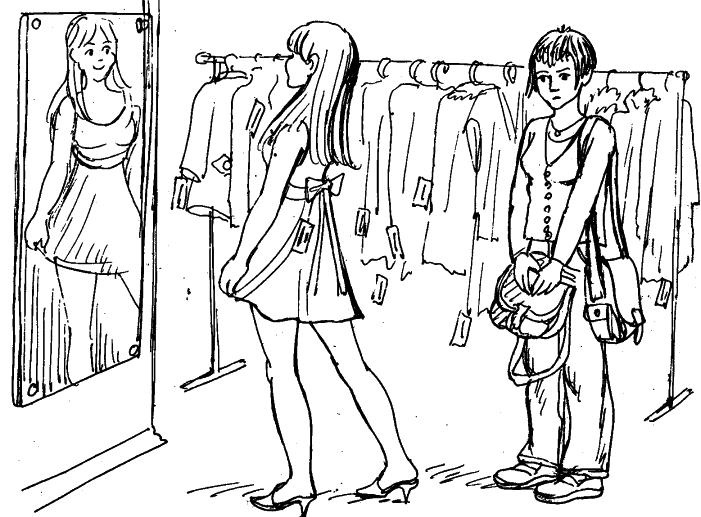 Молодая женщина сетует на то, что не может отказывать в просьбах своей близкой подруге. Та любит ездить по магазинам, покупать себе одежду. Наша рассказчица учится в институте, для нее дорого время, да и лишних денег у нее нет, а поездки в качестве «сопровождающего лица» ей совсем надоели. Отказать же подруге она не может: при первых попытках та обижается и упрекает ее.