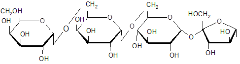 Представителем тетрасахаридов является стахиоза, состоящая из двух остатков a-галактозы, одного остатка a-глюкозы и одного остатка b-фруктозы. Содержится в семенах желтого люпина, сои, гороха, чечевицы.