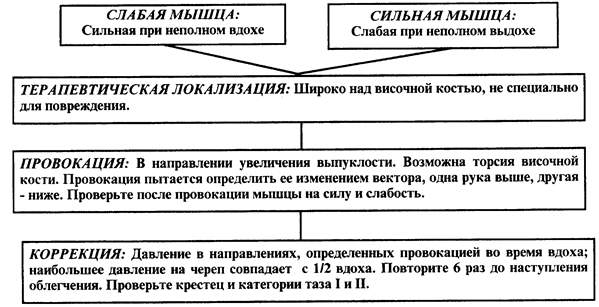 Дефицит глабелы (сфенобазилярная ротация) Возможная причина субокципитальных головных болей. Универсальный и межкостный дефект (сфенобазилярная ротация) БОЛЬ вдоль височно-теменного чешуйчатого шва Височная выпуклость (сфенобазилярный наклон в сторону)