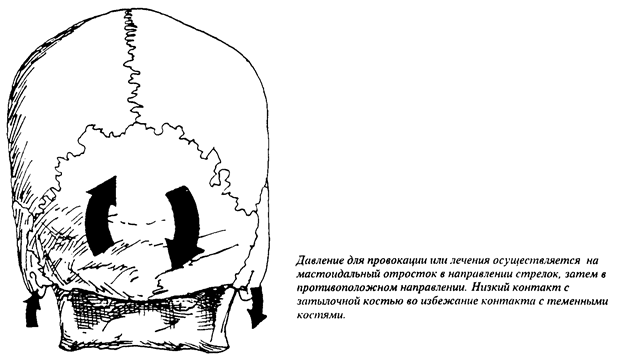 БОЛЬ: На уровне лямбдоидального и окципитально-мастоидального шва.