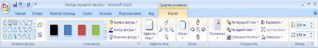 Когда фигура нарисована, появляется контекстный инструмент "Средства рисования" с лентой "Формат".