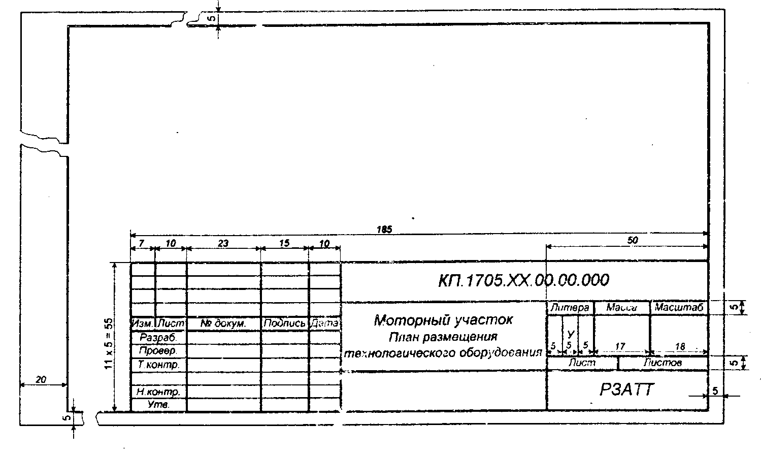 Спецификация технологического оборудования и организационной оснастки. Выполняется над основной надписью (угловым штампом) на листе формата А1.