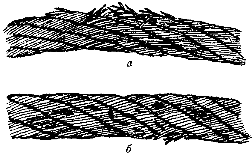 ж) деформация в виде волнистости, корзинообразности, выдавливания проволок и прядей, раздавливания прядей, заломов, перегибов и т.п.;
