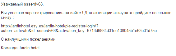 По нажатии кнопки «Готово» на почту пользователя приходит письмо с ссылкой для активации аккаунта (см.2.20).