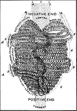 Из книги Э. Д. Бэббитта «Принципы света и цвета» АТОМ БЭББИТТА Со времени постулирования атомистической теории Демокритом много усилий было потрачено на установление структуры атома и способов, которыми атомы соединяются и дают различные элементы. Даже наука не чурается спекуляций и представляет детальные и тщательно разработанные схемы этих крошечных тел. Одной из наиболее примечательных концепций атома, которые возникли в последнее время, является идея д‑ра Эдвина Д. Бэббитта, которая иллюстрируется здесь. Диаграмма не требует особых пояснений. Нужно иметь в виду, что эта кажущаяся массивной структура на самом деле столь мала, что не поддается анализу. Д‑р Бэббитт предложил не только форму атома, но и метод, коим эти частицы могут быть сгруппированы и упорядочены, что приводит к возникновению молекул. По Демокриту, душа также состоит из атомов и подлежит распаду вместе с телом. Он полагал, что ум составлен из духовных атомов. Аристотель считал, что Демокрит пришел к атомистической теории через пифагорейскую доктрину Монад. К элеатам также принадлежали Протагор и Анаксарх. Сократ, живший в 469–399 гг. до н. э., основатель собственной школы, по сути своей был скептиком, но не вынуждал других принимать свою точку зрения, а специально поставленными вопросами подводил каждого человека к осознанию своей собственной позиции. Согласно Плутарху, Сократ рассматривал подходящим для учения любое место, поскольку весь мир является школой добродетели. Он учил, что душа существует до тела и перед погружением в тело наделяется всем знанием. Когда душа входит в материальную форму, она притупляется, но последующими рассуждениями о чувственных объектах она пробуждается и восстанавливает свое исходное знание. На этих посылках основана его попытка стимулировать мощь души через иронию и индуктивное размышление. О Сократе говорили, что единственным предметом его философии был человек. Он сам провозглашал философию дорогой к истинному счастью, а цель философии – двойною: размышление и постижение Бога и освобождение души от материального плена. Он полагал тремя принципами всех вещей Бога, материю и идеи. О Боге он говорил так: «Что Он есть, я не знаю; я знаю, чем Он не является». Материю он определял как субстанцию, возникающую и уничтожающуюся: идеи – как неразложимую субстанцию – мысли Бога. Мудрость он рассматривал как сумму добродетелей. Среди видных членов школы Сократа были Ксенофонт, Эсхин, Критон, Симон, Симмий, Кебет. Профессор Целлер, великий специалист по античной философии, недавно заявил, что сочинения Ксенофонта о Сократе являются подделкой. Когда «Облака» Аристофана – комедия, высмеивающая теории Сократа, – была впервые поставлена на сцене, великий скептик сам присутствовал на представлении. Во время действия, когда он был карикатурно изображен сидящим в корзине, подвешенной в воздухе, и изучающим солнце, Сократ спокойно поднялся с сиденья, чтобы афинские зрители лучше увидели, насколько маска изображающего его актера не похожа на его собственные черты. Элидская школа была основана Федоном из Элиды, отпрыском знатной фамилии, выкупленным из рабства по инициативе Сократа и ставшим его преданным учеником. Платон так восхищался умственными способностями Федона, что назвал в его честь один из своих диалогов. Федону наследова