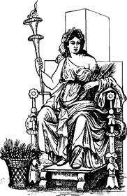 Настенная живопись в Помпеях ЦЕРЕРА, ПАТРОНЕССА МИСТЕРИЙ Церера, или Деметра, была дочерью Кроноса и Реи и матерью Персефоны, отцом которой был Зевс. Некоторые рассматривают её как богиню Земли, но, видимо, более правильно считать ее божеством, покровительствующим сельскому хозяйству вообще, и в частности урожаю. Мак был священным цветком Цереры, и она часто изображалась украшенной гирляндами из цветов мака. В мистериях Церера изображалась в колеснице, влекомой крылатыми змеями. Одежды инициированных сохранялись очень долго, поскольку считалось, что они имеют необычные свойства. Точно так же, как душа не имеет других покровов, кроме мудрости и добродетели, кандидаты, не имея знания, представали в мистериях неодетыми, и сначала им давалась шкура животного, а позднее священная одежда, символизирующая философское учение, доверенное посвященным. По ходу инициации кандидат проходил через двое ворот. Первые вели в нижние миры и символизировали рождение души в невежестве. Вторые вели в комнату, ярко освещенную скрытыми лампадами, в которой статуя Цереры символизировала верхний мир истины и света. Страбон утверждает, что великий храм Элевсина мог вместить двадцать или даже тридцать тысяч человек. Пещеры, посвященные Заратустре, также имели два входа, символизирующих рождение и смерть. Следующий отрывок из Порфирия дает адекватное представление о символизме Элевсинских мистерий. «Бог, будучи светлым принципом, зиждется внутри тончайшего огня и остается невидимым для тех, кто не поднялся выше материальной жизни. По этому поводу нужно отметить, что вид прозрачных тел, таких, как кристалл, мрамор и даже кость, дает представление о божественном свете точно так же, как при виде золота возникает идея чистоты, потому что оно не подвержено ржавчине. Некоторые предполагали, что черный камень означает невидимость божественной сущности. Чтобы выразить высшую идею, божество представлялось в человеческой форме, обязательно прекрасной, потому что Бог есть источник красоты. Такая красота может проявиться в человеке, сидящем или стоящем в той или иной позе, любого возраста и пола, девушке или юноше, муже или невесте. Каждая лучезарная вещь приписывалась богам. Сфера и все сферическое – вселенной, солнцу и луне, иногда – удаче и надежде. Круг и все круглые фигуры – вечности, небесным движениям и сферам. Сектора кругов – фазам Луны, пирамиды и обелиски – огненному принципу и через это – богам Неба. Конус выражает Солнце, цилиндр – Землю, фаллос и треугольник (символ воспроизведения) обозначают порождение» (из «Очерков Элевсинских мистерий» М. Уварова). Элевсинские мистерии, согласно Ч. Гекеторну, пережили многие другие мистерии и существовали около четырех веков после P. X., когда они были запрещены Феодосием (Великим), который грубо разрушил все, что не принималось христианской верой. Об этом величайшем из философских институтов Цицерон сказал, что он учил не только как жить, но и как умирать.