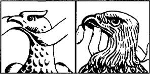 ФЕНИКС ИЛИ ОРЕЛ? Слева изображена голова птицы с первой великой печати США (1782), а справа – голова с великой печати 1902 г. Когда была вырезана первая великая печать, изображенная на ней типа была весьма отлична от орла. В самом деле, шея была гораздо длиннее, и оперенье в верхней части головы весьма примечательно. Клюв мало похож на орлиный. И вообще, вся птица гораздо тоньше орла, а крылья ее короче. Не требуется большою воображения, чтобы понять, что этот так называемый орел, птица с печати, есть на самом деле феникс античности. Больше того, можно усмотреть резонные мотивы в том, что феникс представлял новую страну, возникающую из руин старой. Бенджамин Франклин едко заметил, что орёл в качестве символа не был птицей, которую отличает хорошая мораль! Феникс посвящался солнцу, и продолжительность его жизни, от 500 до 1000 лет, бралась в качестве стандарта для измерения пути небесных тел, а также как временной цикл, используемый в мистериях для обозначения периодов существования. Неизвестно, чем питалась эта птица. Некоторые писатели утверждали, что она питается воздухом, другие что она ест очень редко и никогда – в присутствии человека. Современные масоны, должно быть, понимают специфическое масонское значение феникса, потому что птица в их изображениях использует ветки акации для устройства гнезда. Феникс (который является также мифологической персидской птицей Рух) есть также имя Южного созвездия и, следовательно, имеет астрономическое и астрологическое значение. По всей вероятности, феникс был лебедем греков, орлом римлян и павлином Дальнего Востока. Для античных мистиков феникс был наиболее подходящим символом бессмертия человеческой души, потому что точно так же, как феникс рождается из мертвых семью семь раз, духовная природа человека вновь и вновь триумфально восстает из своего мертвого физического тела. Средневековые герметисты рассматривали феникса как символ завершения алхимического превращения, процесса, эквивалентного человеческому возрождению. Название «феникс» было дано секретной алхимической формуле. Известный нам пеликан степени Розы и Креста, кормящий кусками своего тела младенца, на самом деле является фениксом, что видно из тщательного осмотра его головы. Голова феникса больше похожа на голову орла, нежели на голову пеликана, если у него убрать нижнюю неуклюжую часть. В мистериях было принято называть инициированных фениксами, или людьми, которые родились вновь. Потому что точно так же, как физическое рождение дает человеку сознание в физическом мире, так и неофит после девяти степеней в лоне мистерий обретает сознание духовного мира. «Да не увидит Царства Божия не рожденный вновь», – говорил Иисус (Ин 3:3), и говорил Он так о тайне инициации. Феникс вполне подходит для символизации этого духовного рождения.