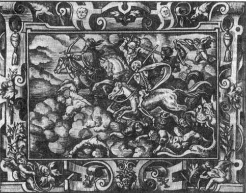 Из книги Солиса «Библейские фигуры» ЧЕТЫРЕ ВСАДНИКА АПОКАЛИПСИСА В аллегории четырех всадников – согласно таинствам философии – изложены состояния человека во время различных стадий его существования. В первой, духовной стадии, он коронован. Когда он сходит в область опыта, он вооружен мечом. Достигая физического выражения, которое является наинизшим его состоянием, он несет весы, и «философской смертью» он вновь освобождается в высшие сферы. В древних римских играх колесницу солнца влекли четыре лошади разного цвета, и всадники Апокалипсиса могут быть интерпретированы как представляющие солнечную энергию, скачущую на четырех элементах, которые служат ей средством ее выражения. Когда была снята пятая печать, св. Иоанн увидел убиенных за слово Господне. Когда была снята шестая печать, произошло страшное землетрясение, солнце сделалось мрачно, а луна сделалась как кровь. Появились ангелы ветров и потом еще один ангел, запечатлевший 144 тысячи сынов Израилевых, и печать эту нужно сохранить до ужасного Судного дня. Если сложить цифры этого числа, согласно пифагорейской системе нумерической философии, получается число 9, мистическое число человека и число инициации; тот, кто проходит девять ступеней мистерий, принимает знак креста как эмблему возрождения и освобождения от низшей, инфернальной, природы. Сложение трех цифр исходного священного числа 144 показывает восхождение мистерии до третьей сферы. Когда была снята седьмая печать, на полчаса наступило безмолвие на небе. Затем сошли семь ангелов, и было дано им семь труб. Когда затрубили семь ангелов, ритмически повторяя семибуквенное имя Логоса, начались страшные катастрофы. Звезда по имени Полынь упала с небес, что означает, что секретные доктрины древних были даны людям, которые осквернили их и Божью мудрость направили на разрушение. И другая звезда, символизирующая ложный свет человеческого разума в отличие от божественного разума посвященных, упала на землю, и был дан ей ключ от кладезя бездны (материалистическое мышление и природа), который открылся и выпустил на свет все дьявольские создания. И сошел другой ангел, облаченный облаком, чье лицо было как солнце, а ноги как столпы огненные, и одна нога его была на море, а другая – на земле (герметический антропос). Это небесное существо дало св. Иоанну маленькую книгу и велело ему съесть ее, что пророк и сделал. Книга представляет секретную доктрину – духовную пищу, которая есть питание духа. И св. Иоанн, будучи «духом», ест всю мудрость Божью, и голод его души умиротворен. Двенадцатая глава описывает великое чудо на небесах – явилась женщина, облаченная в солнце, и под ногами ее луна, а на голове корона из двенадцати звезд. Эта женщина представляет созвездие Девы, а также египетскую Исиду, которая должна была разрешиться от бремени своим сыном Гором. На нее напал Тифон, пытавшийся уничтожить дитя, которому богами предназначено убить дух дьявола. Война на небе имеет отношение к разрушению планеты Рагнарёк и падению ангелов. Дева может быть интерпретирована как символ секретной доктрины, а ее сын – как символ инициированного, рожденного из «чрева мистерии». Дух дьявола персонифицирован в огромном драконе, пытающемся подчинить человечество уничтожением матери тех просвещенных душ, которые непрестанно трудятся во имя спа