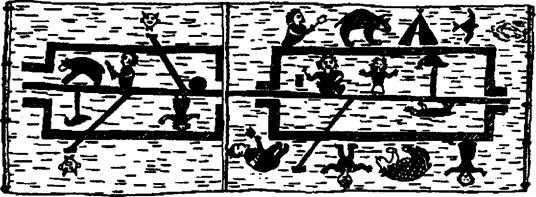 ФРАГМЕНТ ИНДЕЙСКОЙ ПОСУДЫ Этот любопытный фрагмент был найден в четырех футах под землей недалеко от Каса‑Гранде в Аризоне. Он является весьма важным, потому что поразительно напоминает масонский компас и угольник. Индейские корзины, посуда и одеяла часто украшены орнаментами, представляющими интерес для масонов и философов. Для индейцев число четыре обладает священными свойствами, поскольку Великий Дух сотворил вселенную в квадратной форме. Тетрада почиталась пифагорейцами, которые считали ее символом Творца. Легендарные сказители индейцев говорят о приключениях героев, проникающих в царство мертвых. Это свидетельствует о культе мистерий у индейцев Северной Америки. Установление мистерий осознавалось как философский эквивалент смерти, потому что прохождение ритуалов сводилось к переживанию смерти при обладании физическим телом. По завершении ритуала инициированный по‑настоящему получает способность входить и выходить из своего физического тела по своей воле. Это и есть философское основание аллегории приключений в индейской земле теней, или мире духов.