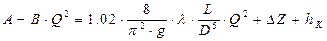 де Re – число Рейнольдса; Гідравлічну характеристику трубопроводу без лупінгу визначаємо згідно формули