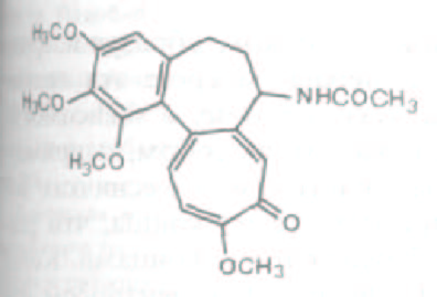 Микротрубочки митотического веретена пребывают в состоянии необычайно быстрой сборки и разборки, что объясняет крайнюю чувствительность веретена к различным препаратам, способным связываться с тубулином (разд. 13.5.2). Один из алкалоидов безвременника осеннего, колхицин, использовался в лечебных целях еще древними египтянами. Молекулы колхицина (рис. 11-61) прочно связываются с молекулами тубулина (образуя эквимолярный комплекс) и препятствуют тем самым их полимеризации; поэтому обработка делящихся клеток колхицином вызывает через несколько минут исчезновение митотического веретена и блокирует клетки в митозе. Вещества, обладающие подобным действием, называются антимитотическими агентами (табл. 11-3). Во многих случаях их действие обратимо, и удаление препарата дает возможность веретену образоваться вновь, а митозу завершиться. Так как разрушение микротрубочек веретена избирательно убивает многие быстро делящиеся клетки, ряд антимитотических препаратов, в частности вин-бластин и винкристин, широко используются в терапии рака.