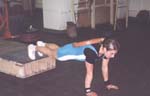 Упражнение способствует развитию трёхглавых разгибателей рук. Для увеличения нагрузки на разгибатели рук, на спину ложится диск от штанги, а ноги надо положить на возвышение (скамью, подставки). /4/