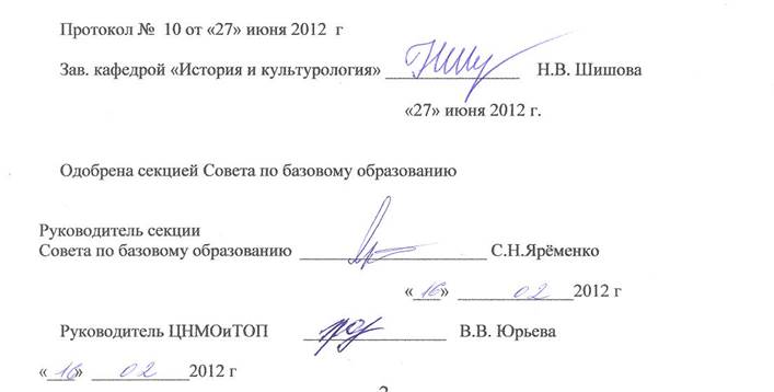 Рабочая программа составлена коллективом авторов к.ф.н., доц. Моргачевым В.О., к.и.н., доцентом Ушкаловым В.А., к.и.н., доц. Воскобойниковым С.Г., к.ф.н., доц. Бабайцевым А.В. и к.и.н., доц. Овчаренко В.А. и рассмотрена на заседании кафедры «История и культурология»