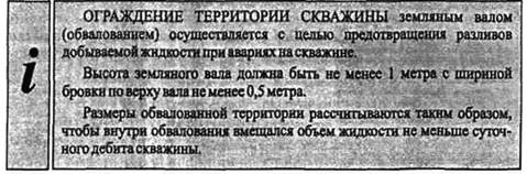 За работой погружного оборудования скважины, состоянием устьевого оборудования, подачей жидкости, состоянием территории скважины бригада по добыче нефти ведет ♦ Для проведения внешнего осмотра подойти к обвалованию скважины с подветренной стороны. ♦ За пределами обвалования включить и прогреть газоанализатор. ♦ Зайти внутрь обвалования и произвести анализ воздушной среды. Предельно — допустимые концентрации; Углеводороды - 300 мг / м3 Сероводород в смеси с углеводородами - 3 мг / м3 К проведению внешнего осмотра следует приступать только в том случае, если концентрация вредных газов не превышает ПДК. ♦ Проверить состояние территории скважины. - наличие планировки площадки; - отсутствие посторонних предметов, растительности и замазученности; - наличие обвалования.