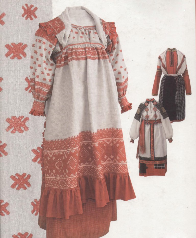 Костюмы лотошниц и покупательниц: рубаха, запон (нагрудник), понева, платок, бусы, онучи, лапти