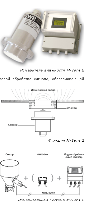 В качестве измерителя влажности сыпучих веществ был выбран M-Sens 2. Поточный измеритель влажности M-Sens 2 - это датчик, специально разработанный для непрерывных или дискретных измерений влажности в технологических процессах. В различных вариантах установки M-Sens 2 может использоваться при он-лайновых измерениях влажности различных видов пыли, порошков, гранулятов и других сыпучих материалов. Принцип действия поточного измерителя влажности M-Sens 2 основан на измерении напряженности высокочастотного поля и прямой цифровой обработке сигнала, обеспечивающей высокую степень разрешения. 1) Напряжение питания 220В; 2) Потребляемая мощность не более 20 Вт; 3) 3)Потребляемый ток не более 1 А; 4) Рабочая температура -10+45°С.