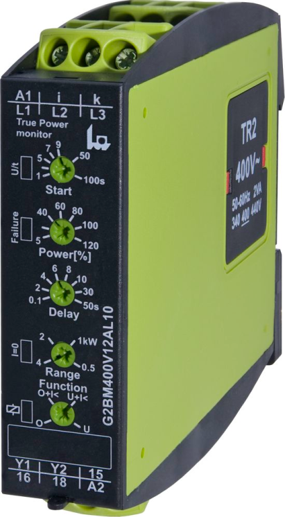 Рисунок 20 –датчик скорости. Реле контроля нагрузки позволяют без применения дополнительных компонентов контролировать различные варианты сбоя в работе промышленного оборудования, имеющего своим основным элементов двигатель или насос. Для этого реле контроля подключается в цепь питания электродвигателя (насоса), измеряет активную мощность или коэффициент мощности (cos φ) и осуществляет управляющее воздействие при выходе контролируемых значений за предустановленные пороги срабатывания. Примеры применения для двигателей: · ограничение грузоподъемности кранового оборудования · контроль свободного места в пресс-компакторах · отсутствие потока воздуха, засоренные фильтры, в вентиляционных системах · износ или повреждение режущего/сверлящего инструмента в станках · наличие/отсутствие обрабатываемого материала в станках · повреждение сверла или режущего элемента в станках · определение вязкости перемешиваемой субстанции (миксеры) · контроль работы конвейеров (обрыв клинового ремня, блокировка, наличие и количество груза) · блокировка, недогрузка и простой, износ элементов дробильного оборудования Примеры применения для насосов: · защита насосов от сухого хода (без датчиков!) · перегруз при застревании инородного материала или засорении канала · определение наличия закрытых вентилей · засоренные фильтры · износ механических деталей · разрушение рабочего колеса вследствие воздействия кавитации В виду того, что реле контроля мощности и коэффициента мощности cos φ контролируют не параметры цепи измерения (как, например, реле контроля фаз), а именно состояние установки в работе, их так же называют реле контроля нагрузки. Под нагрузкой тут подразумевается именно контролируемое оборудование. Для вычисления активной мощности или коэффициента мощности (cos φ) необходимо измерить величины напряжений и ток по одной из фаз, непосредственно в цепи питания электродвигателя (насоса). Реле контроля нагрузки могут применяться для 1- и 3-фазных нагрузок. Наблюдение за изменением мощности, потребляемой электродвигателем (или насосом) во время работы позволяют делать ряд полезных выводов о состоянии как непосредственно самого двигателя (насоса), так и, что более важно, о состоянии всей установки (станка, конвейера, дробилки, вентиляционной системы, пресс-компактора и т.п.). Это позволяет с успехом использовать их для защиты оборудования от критических сбоев или для заблаговременного информирования о необходимости технического обслуживания. Реле контроля активной мощности (P) – позволяют уверенно контролировать как ситуацию перегрузки, так и ситуацию недогрузки. Наиболее универсальный вариант контроля. Реле контроля коэффициента мощности (cos φ) – позволяют уверенно определять только ситуацию недогрузки, т.к. коэффициент мощности сильно изменяется в этом случае, но практически не изменяется при возникновении ситуации перегрузки. Реле контроля тока (I) – позволяют уверенно определять только ситуацию перегрузки, т.к. в этом случае ток сильно возрастает. Сигнал на выходе: Релейный контакт – наиболее типичный вариант. Позволяет непосредственно осуществлять управляющее воздействие (запрет на работу установки) или информировать об обнаруженном сборе (лампочка на пульте управления). Некоторые устройства имеют 2 перекидных контакт