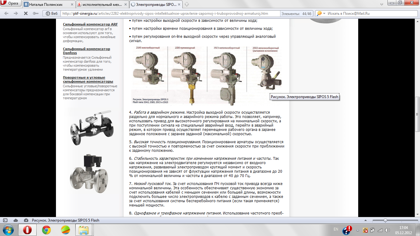 В качестве исполнительного механизма выбран электропривод типа SIPOS 5 Flash. Электроприводы SIPOS 5 Flash могут использоваться для управления как запорной (режим работы S2-15 мин), так и регулирующей арматурой (режим работы S4/S5 25 %). - Температурный диапазон от -20 до +60°С; - Напряжение питания 400-460 В.