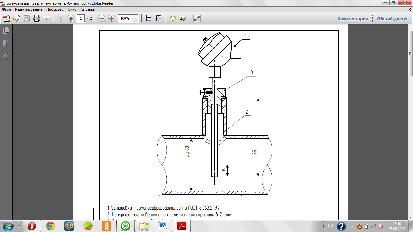 3.4 Конкретные решения по монтажу приборов с учетом технологических особенностей объектов. 3.4.1 Монтаж по месту отборных устройств и первичных преобразователей. Монтаж первичных отборных устройств показан на рисунках данного раздела. Трубопровод и арматуру преобразователя термоизолировать. На трубопроводе рядом с преобразователем сопротивления приварить гайку М6 для пломбирования.