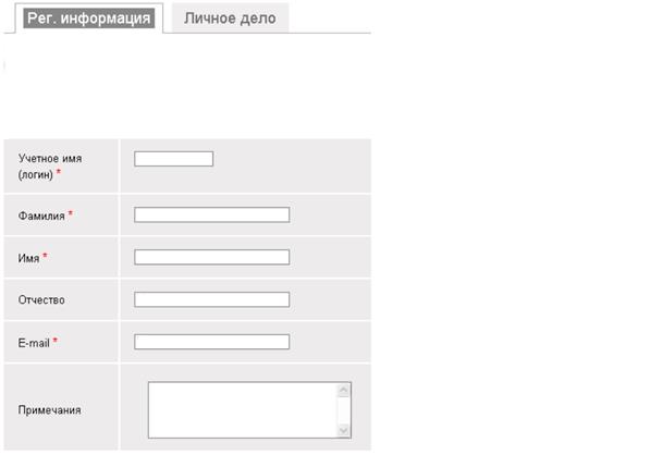 Рисунок 7 форма изменения регистрационной информации Вкладка «Личное дело» служит для отображения информации о статусе пользователя по отношению к учебным курсам, на которые он назначен в качестве слушателя или преподавателя.(рис. 8).