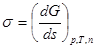 Термодинамические функции поверхностного слоя Поверхностный, межфазный слой представляет собой область постепенного (плавного) изменения свойств, при переходе от одной фазы системы к другой. Также постепенно меняется структура поверхностного слоя – от структуры одной фазы до структуры другой фазы. Образование поверхностного слоя есть результат взаимодействия смежных фаз. Изменения свойств и структуры поверхностного слоя обусловлены действием поверхностной энергии. При постоянной температуре и давлении поверхностная энергия Гиббса определяется произведением поверхностного натяжения (фактор интенсивности) s на площадь поверхности (фактор емкости ) s: