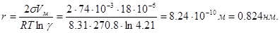Решение: Радиус r равновесного зародыша в зависимости от пресыщения системы определяется по уравнению Кельвина (1.16)