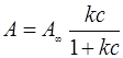 В данном случае изотерма адсорбции строится в координатах c/A=f(c) и будет представлять собой прямую линию с тем же коэффициентом.