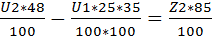 Общие количество окислительного шлака (U0), обеспечивающие заданную степень дефосфорации металла, составляет U0 = U1 + U2 = 5.13+2.06 = 7.19% В рассматриваемом примере содержание CaO в шлаке периода плавления при 20% SiO2 и CaO/SiO2 = 1,75 должно быть равным % CaO = % SiO2 * 1,75 = 35%, А расход извести Z1 для его образования из балансового уравнения U1*35/100 = Z1*85/100 Z1 = 5,13*35/85 = 2,11кг/100 кг В шлаке окислительного периода плавки при 20% SiO2 и CaO/SiO2 = =2,4 должно быть % CaO = 20*2,4 = 48% С учетом CaO в остатке первого шлака, количество извести, которое понадобится для формирования второго шлака Z2 определится следующим образом