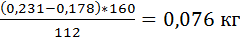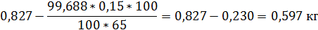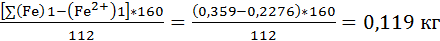 ОFe = Оф + Ос + ∆Ос..п. = 0,609 – 0,533 – 0,0235 = 0,0525 кг