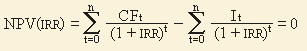 CF – приток денежных средств в период t лет (t = 1,..., N) I – размер инвестиции в период t лет (t = 1... N) r – ставка дисконтирования (равна приемлемой для инвестора норме доходности на капитал). Внутренняя норма доходности (IRR) -норма прибыли, порожденная инвестицией. Это та норма прибыли (барьерная ставка, ставка дисконтирования), при которой чистая текущая стоимость инвестиции равна нулю, или это та ставка дисконта, при которой дисконтированные доходы от проекта равны инвестиционным затратам. Внутренняя норма доходности определяет максимально приемлемую ставку дисконта, при которой можно инвестировать средства без каких-либо потерь для собственника. IRR = r, при котором NPV = f(r) = 0, Ее значение находят из следующего уравнения: