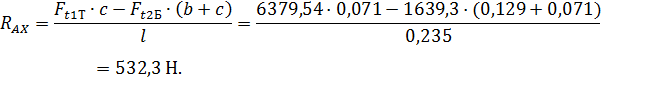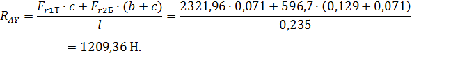 Линейные размеры со сборочного чертежа: a=35мм, b=129мм, c=71мм, d=24мм, l=235мм. Определяем реакции в опорах и строим эпюры изгибающих моментов Ми в двух плоскостях: вертикальной YZ и горизонтальной XZ. Реакции в опорах ищем из условия