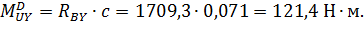 Значения изгибающих моментов Muy в горизонтальной плоскости YZ в характерных сечениях вала: Изгибающие моменты в вертикальной плоскости Z0Y: в точке А: