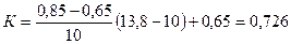 Вычислим по линейной интерполяции значение К для высоты 13,8м.