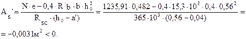 4. Определим γb1=0,9 MII/ MI =0,9<1,1. 5. Расчетные сопротивления Rb/= γb1∙ Rb=0,9∙17,0=15,3 МПа;. 6. Вычислим случайный эксцентриситет: