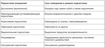 Таблица. Подсистемы поведения, согласно модели Д. Джонсон