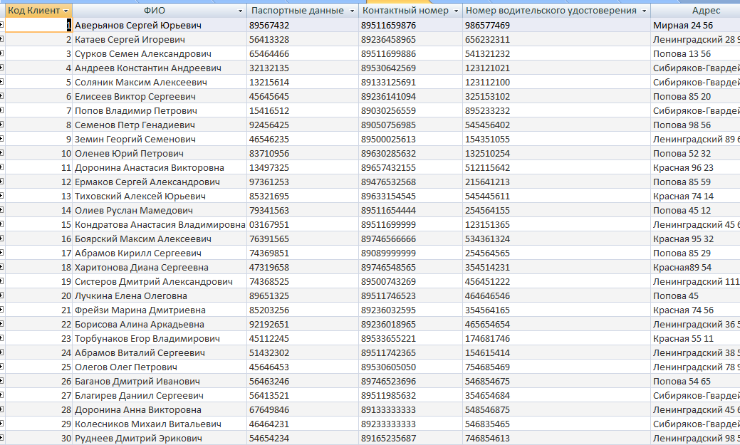 Рисунок В.1 – Таблица «Клиенты»
