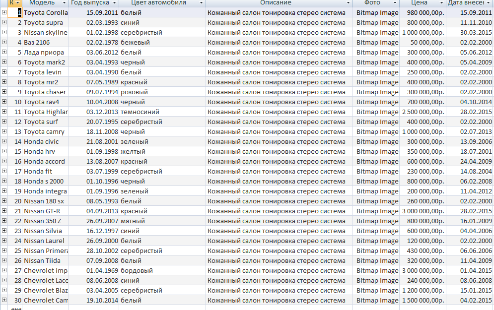 Рисунок В.4 – Таблица «Автомобили»
