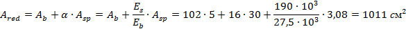 Определение геометрических характеристик приведенного сечения - приведенная площадь сечения