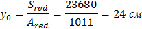 - расстояние от центра тяжести площади приведенного сечения до нижней грани ребра: