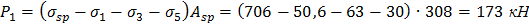 Точка приложения усилия P1 находится в центре тяжести сечения напрягаемой арматуры и поэтому: