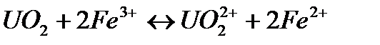 Эта реакция также является обратимой при определенном окислительно-востановительном потенциале и рН среды. В присутствии ионов трехвалентного железа окисление четырехвалентного урана начинается уже при ОВП=350-400 мВ, что примерно соответствует коэффициенту окисления 0.2.