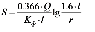 где Q - производительность скважины, м3/cут.; Кф - коэффициент фильтрации, м/сут.; l - длина фильтра, м; r - наружний радиус скважины, м.