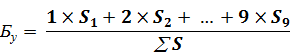 где: Бу - условный средний класс бонитета; 1,2…9 -условные цифровые значения соответствующих классов бонитета; S1,S2…S9 - площади насаждений соответствующих классов бонитета,га; å S - общая площадь насаждений данной породы, га. Таблица 7