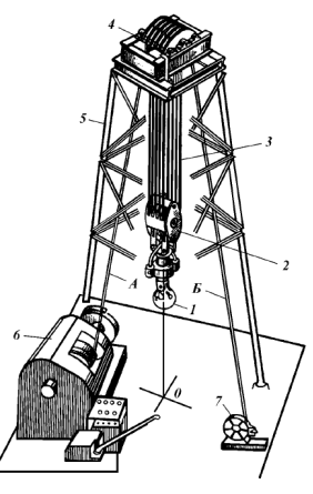 Спускоподъемным комплексом буровой установки называется совокупность узлов, механизмов и приспособлений, служащих дляспуска, подъема и удержания на весу бурильных и обсадных колонн и обеспечения технологических и аварийных операций. В процессе проводки скважины спускоподъемный комплекс выполняет следующие функции: спуск и подъем (СПО) бурильных колонн для смены изношенного долота, когда нагрузка на систему не превышает веса колонны в воздухе; дополнительные технологические и аварийные работы, когда нагрузки на систему превышают вес бурильной колонны в воздухе. К дополнительным и аварийным работам относятся: приподъем и спуск бурильной колонны в процессе бурения при одновременном ее вращении и промывке скважины (расширение): спуск обсадных колонн; подъем обсадных колонн для освобождения элеватора или клиньев после наращивания очередной трубы или в связи с осложнениями; ликвидация прихватов и аварии бурильных и обсадных колонн; спуск и подъем бурильных колонн в искривленных и наклонных скважинах. Первая категория операций (СПО) является наиболее продолжительной, циклической с переменными динамическими нагрузками, определяющими долговечность элементов спускоподъемного комплекса. Вторая категория операций вызывает более высокие, кратковременные нагрузки в элементах комплекса, носящие случайный характер. Так как закономерность действия этих нагрузок не установлена, то за максимальную нагрузку принимают усилие на крюке, которое не должно превосходить в процессе всего цикла бурения скважины разрывной прочности применяемых бурильных труб или 0,8 наибольшей страгивающей нагрузки спускаемых обсадных труб.