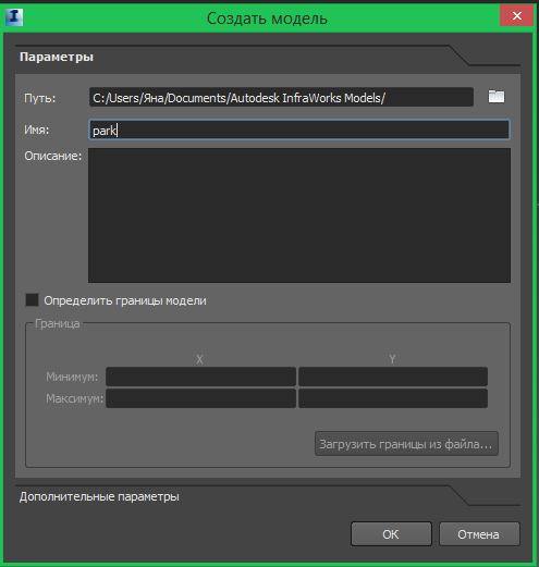 Запускаем Infraworks 2014 и выбираем пункт «Создать модель», в появившемся окне вводим имя проекта.