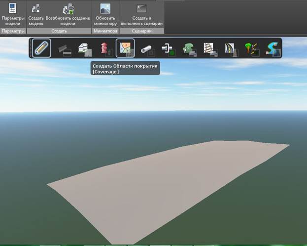 Теперь мы можем создать области покрытия и добавлять различные объекты с помощью панели инструментов.