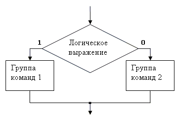 В полном ветвлении предусмотрено два варианта действий исполнителя в зависимости от значения логического выражения (условия). Если условие истинно, то выполняться будет только первая ветвь, иначе только вторая ветвь.
